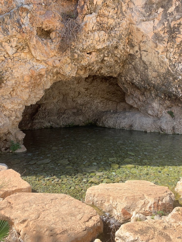 After Mt. Arbel, we stopped at the Harod Spring. This spring bubbles up from what’s called the Gideon Cave. This was the site where Gideon’s soldiers were selected for war. We read in Judges 7 that the army of Israel was to fight the Midianites, but God told Gideon he had too many soldiers — 32,000. God wanted there to be no doubt that victory would come from Him, and not from their own strength, so Gideon was instructed to drastically reduce the number of soldiers. First he was told to dismiss the men who were afraid, and 10,000 remained. God determined that was still too many, so He told Gideon to bring the soldiers to this stream. He then gave Gideon an unusual order…