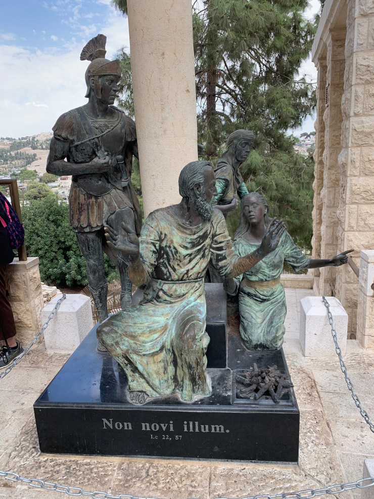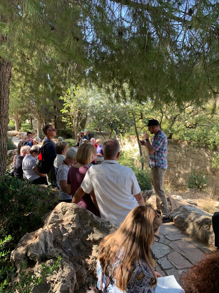 Marty directed our attention to the nearby olive trees, pointing out their trunks, bent and twisted from withstanding centuries of storms. The branches, as you can see on the picture, are ripe with olives. The olives will remain hard until the first heavy rain. We were told the Hebrew word for rain is similar to the word for grace. Our hearts remain hard until grace shows up.