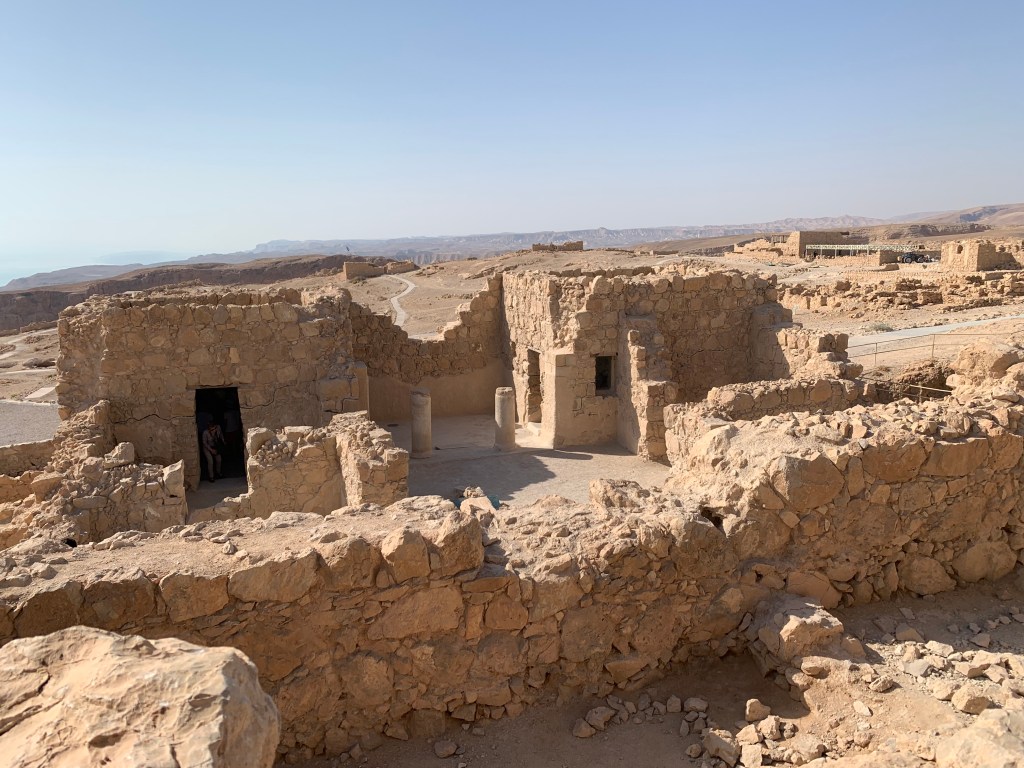 Though it is not mentioned by name in Scripture, Masada figures prominently in Jewish history. This massive mountaintop stronghold was built towards the end of the last century BC by King Herod the Great as a fortress-palace, a place to flee for refuge if needed. In addition to being built on a mountaintop, Herod fortified it even further by building an extensive defense wall around the perimeter. Within the complex were huge cisterns for water (hewn out of solid rock) and storage buildings for food and weapons, in case of a prolonged siege. King Herod never had to flee to Masada but he did enjoy using it as a winter palace. After Herod died in 4 BC, Masada was unoccupied for over 70 years.