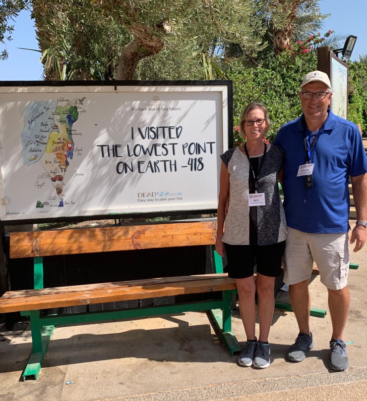 Thank you for sharing in our trip to Israel! This blog post will take us through our final two days of touring this beautiful country. Israel is a land of contrast and variety, and we experienced this in many ways. Not only is there great diversity in its people, ethnic groups, cultures and religions, there is also much diversity in its geography. This small country, approximately the size of New Jersey, boasts of snow-capped Mount Hermon in the north (rising 9232 feet above sea level) and the Dead Sea in the south — the lowest place on earth at 1388 feet below sea level. In between these two points (about 130 miles) lie valleys, plains, deserts and hills.