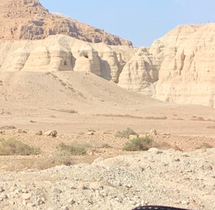 A short distance from Masada, Ari, our Israeli tour guide, pointed out some caves in the mountains. He told us these are the caves of Qumran, where the Dead Sea Scrolls were discovered in 1946/1947. The Dead Sea Scrolls are the oldest copies of biblical manuscripts that have ever been found. These manuscripts had been wrapped carefully, then tucked into airtight clay jars and sealed. Because of the hot, dry atmosphere of the Dead Sea area (and God’s amazing timetable), these ancient portions of Scripture were preserved throughout the centuries. Today the Scrolls are kept in the Shrine of the Book at the Israel Museum.