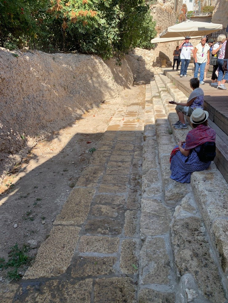 Our final day in Jerusalem brought us back to the Old City. We began the day just outside the walls of the Old City at the site known as the City of David. Our tour guide, Ari, told us we were going to “walk 2 Samuel 5.” This chapter of Scripture tells us how David captured Jerusalem from the Jebusites, the original inhabitants of the city. Apparently the Jebusites, thinking they were safe, taunted David, now the king of Judah, by saying, “‘You’ll never get in here! Even the blind and the lame could keep you out!'” (2 Sam. 5:6a). The Jebusites arrogantly thought Jerusalem was impenetrable because it was built high on a hill and was surrounded by strong walls. David, though, had a brilliant plan. He said, “Anyone who conquers the Jebusites will have to use the water shaft to reach those ‘lame’ and ‘blind’ who are David’s enemies” (2 Sam. 5:8). So when Ari told us we were going to “walk 2 Sam. 5,” he meant we were literally going to walk through the same water shaft!