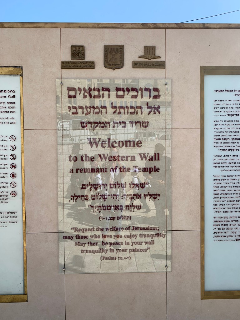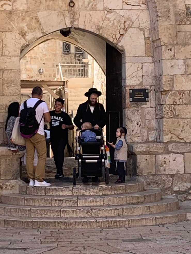 From there we walked to the Western Wall, another one of my favorite places in Jerusalem! The Western Wall, in years past known as the Wailing Wall, is the only fragment of the Great Temple to survive the Roman destruction of 70 AD. It is the most sacred structure of the Jewish people. “Its ancient stones stand testimony to a glorious Jewish past, a proud heritage and an extraordinary national rebirth. It is a focus of Jewish longing and prayer for redemption and renewal.” (taken from an information pamphlet). Non-Jewish worshipers find this area to be sacred and significant, as well. Indeed it felt like a tiny glimpse into heaven (although imperfect), where John’s vision foretells: “I saw a vast crowd, too great to count, from every nation and tribe and people and language, standing in front of the throne and before the Lamb…” (Rev. 9:9).